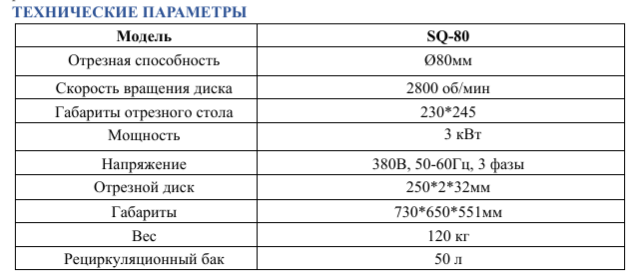 Станок SQ-80 предназначен для резания различных деталей из металла, керамики или композитных материалов с использованием СОЖ. SQ-80 – настольный станок для высококачественного резания, работающий с дисками Ø250 мм. Режущая способность Ø80 мм. Станок оборудован мощным электродвигателем 3 кВт. Нижняя часть станка выполнена из высокопрочного литого сплава. Стол для резания имеет Т-образные пазы, в которые можно установить разные наборы зажимных приспособлений для повышения универсальности системы. Крупная камера резания и большой рабочий стол обеспечивает простую фиксацию деталей. Быстрозажимные приспособления можно заменить на стандартные зажимные приспособления для фиксации крупных и сложных деталей. Вся система расположена под защитным кожухом из нержавеющей стали с крупным ударостойким смотровым окном, через которое оператор может следить за процессом резания. Модель - SQ-80 Отрезная способность - Ø80мм Скорость вращения диска - 2800 об/мин Габариты отрезного стола - 230*245 Мощность - 3 кВт Напряжение - 380В, 50-60Гц, 3 фазы Отрезной диск - 250*2*32мм Габариты - 730*650*551мм Вес - 120 кг Рециркуляционный бак - 50 л
